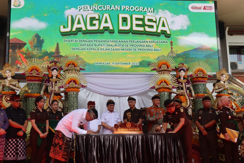Kepala Kejaksaan Negeri Gianyar, Bapak Agus Wirawan Eko Saputro, S.H., M.H., menghadiri kegiatan Peluncuran Program Jaga Desa yang diselenggarakan di Kantor Kejaksaan Tinggi Bali. Acara tersebut berlangsung khidmat dan penuh makna, ditandai dengan penandatanganan perjanjian kerja sama antara Bupati/Wali Kota se-Provinsi Bali dengan Kepala Kejaksaan Negeri se-Provinsi Bali. Kamis, (11/09/2025).