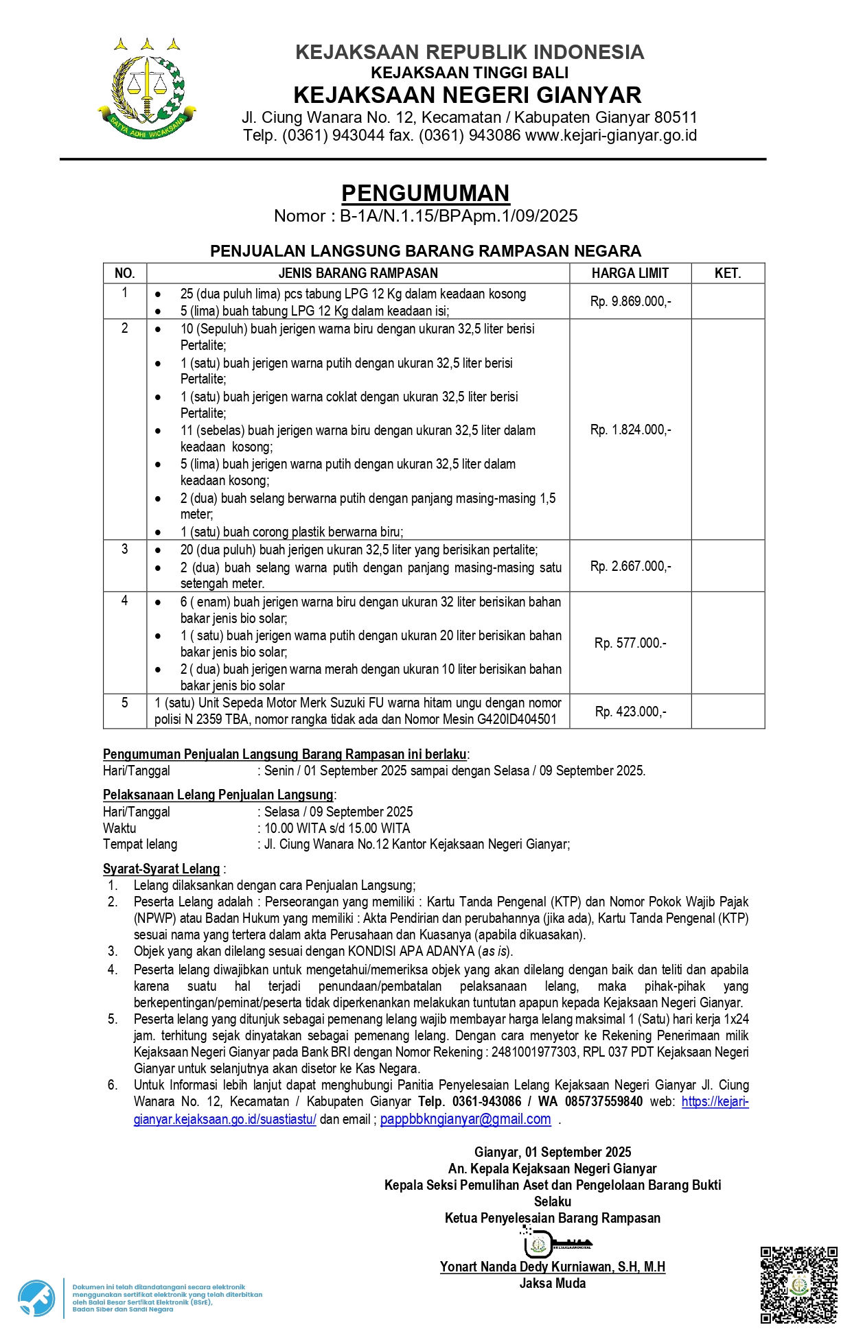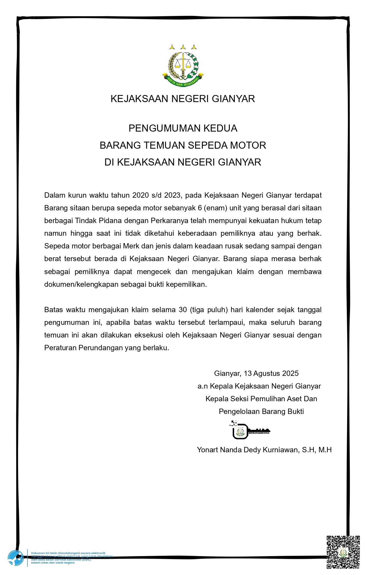 Sistem informasi ini merupakan perwujudan digitalisasi untuk mengelola dan memfasilitasi proses pemulihan aset yang terkait dengan barang bukti dan barang rampasan. Dengan pendekatan satu pintu, semua informasi terkait barang bukti dan barang rampasan dapat diakses untuk memudahkan dalam setiap proses administrasi dan pelayanan kepada masyarakat